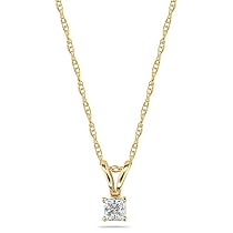 About 14k Yellow Gold Princess Cut Diamond Pendant (1/10 cttw, I-J Color, I2-I3 Clarity), 18" detail